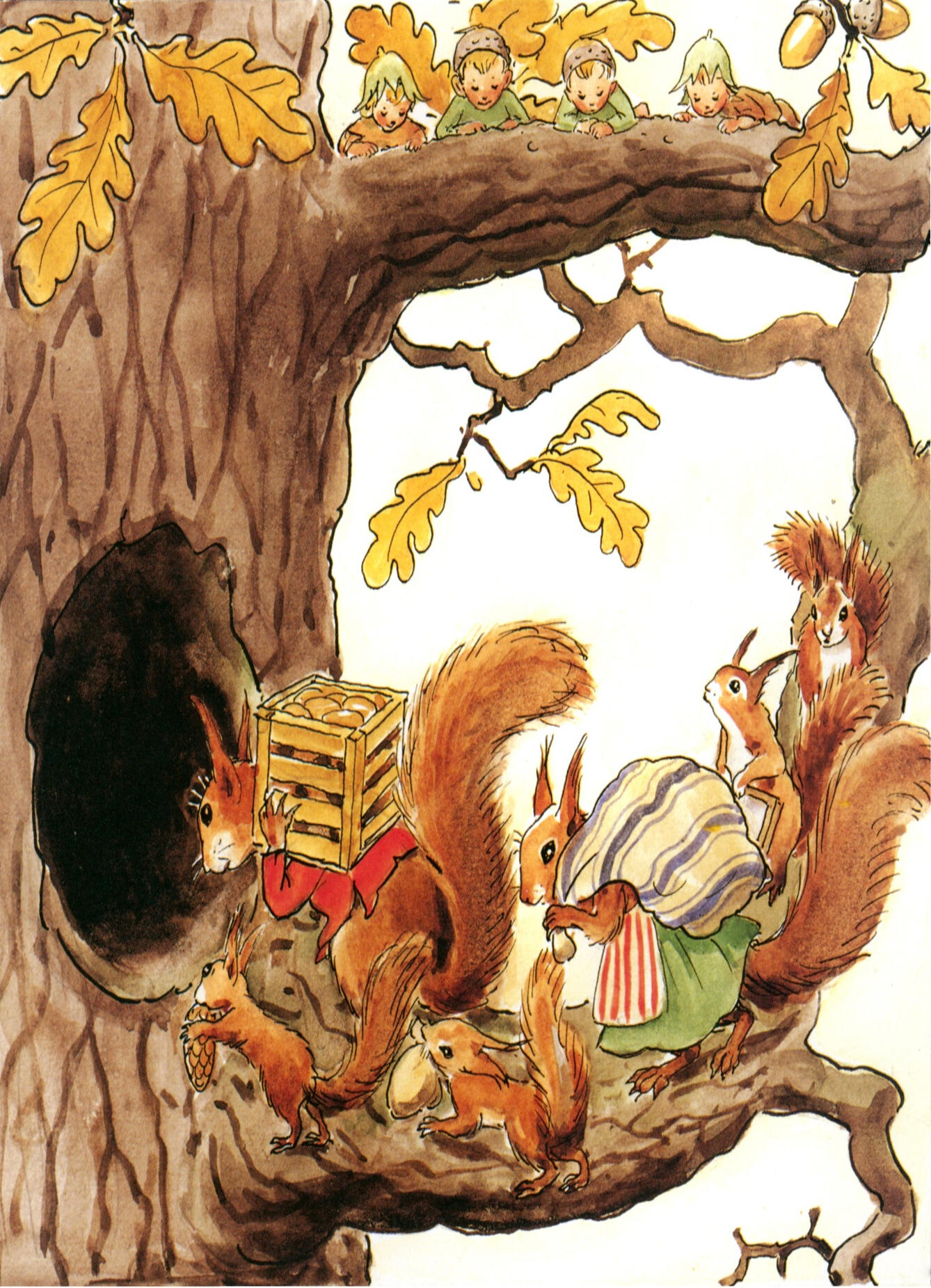 Elsa Beskow (1874–1953) was a renowned Swedish illustrator and author, celebrated for her contributions to children's literature through her enchanting and imaginative artwork. She was born in Stockholm, Sweden, and began her career as an illustrator and writer in the early 20th century. She was deeply influenced by the natural landscapes of Sweden and the fairy-tale tradition. Beskow married painter and illustrator Natanael Beskow, and they had several children, who often inspired her work. Her career spanned over four decades, during which she created numerous beloved children's books.Beskow’s art is characterized by its whimsical and detailed illustrations that bring fairy-tale worlds to life. Her style combines vibrant colors with intricate line work, often depicting children interacting with magical creatures and elements from nature. She employed a gentle, narrative-driven approach, with a focus on creating a sense of warmth and wonder. Her illustrations often feature a blend of realism and fantasy, capturing the charm and simplicity of Scandinavian folk tales.Elsa Beskow’s impact on children's literature and illustration is significant. Her work contributed to the development of a distinctive style in children’s books that emphasized imaginative storytelling and detailed, expressive art. Beskow's books remain cherished classics, and her illustrations continue to inspire with their timeless charm and ability to capture the magic of childhood.